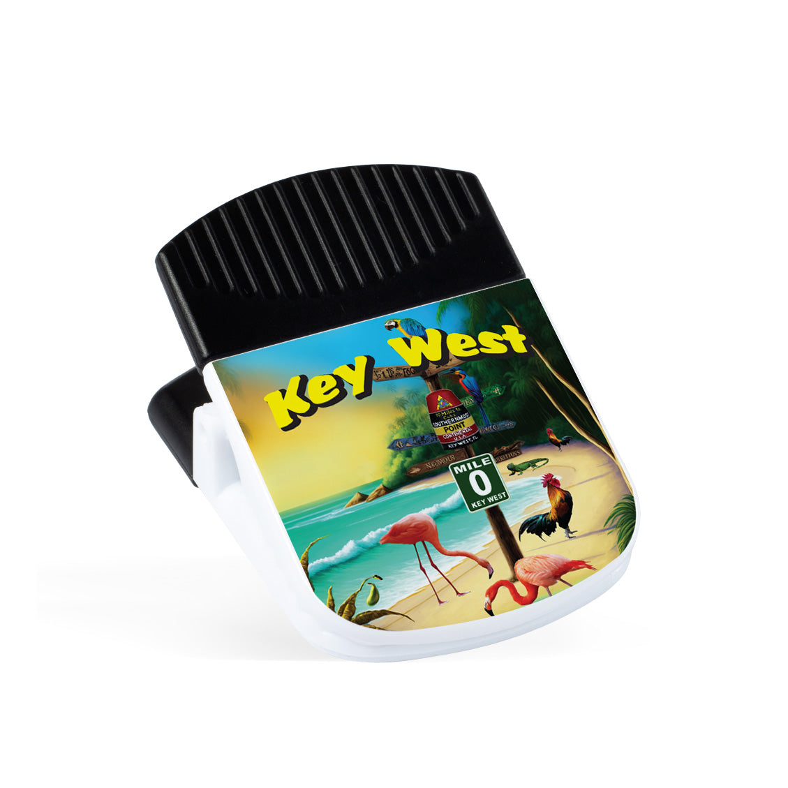 The magnetic clip is perfect as a chip or snack bags clip. It features a heavy-duty, spring-loaded hinge and a strong magnet on the back for added versatility. Imprinted, assembled, and packaged in the USA